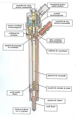 - bobina electrică. Mai nou, injectorul are ca un element de acționare fie o bobină pentru producerea unui câmp magnetic, fie un sistem piezoelectric.