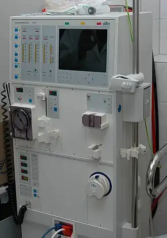 ![]() O mașină de hemodializă care este utilizată pentru a înlocui funcția rinichilor | |