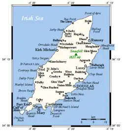 | Cel mai înalt punct | Snaefell[*] (621 m) | ||||