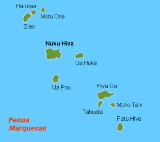 | Insule principale | Nuku Hiva, Ua Pu, Ua Huka, Hiva Oa, Fatu Hiva |