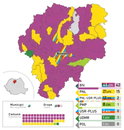 ![]() Harta României cu județul Bistrița-Năsăud indicat | |||