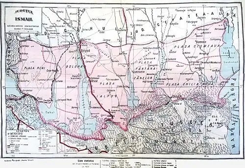 Județul se afla în partea estică a României Mari, în sudul regiunii Basarabia, în nordul brațului Chilia al Dunării și al Deltei Dunării. A avut inițial cinci plăși, apoi, după 1930, patru. Se învecina la nord cu județele Cahul și Cetatea Albă, la vest cu județul Covurlui, la sud cu județul Tulcea, iar la est cu Marea Neagră. Actualmente, cea mai mare parte a teritoriului fostului județ aparține statului Ucraina, în timp ce o parte mai mică, la vest, aparține Republicii Moldova.