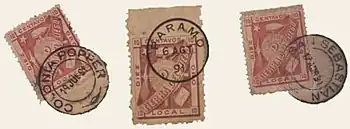 Emisiunea primului timbru de 10 centavos, echivalent cu 10 centigrame de aur pur, s-a realizat în anul 1891. Aceasta a reprezentat un impuls pentru mesagerii care transportau scrisori între diferitele așezări ale Companiei (El Páramo en San Sebastián, Carmen Sylva, mai la sud și Río Grande -Colonia Popper-) și un Centru Poștal care funcționa la San Sebastián.