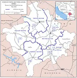 - ↑ „NATO Topics: Kosovo Force (KFOR)”. Nato.int. Arhivat din original la . Accesat în .