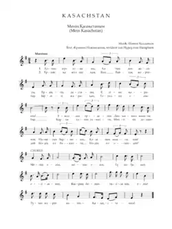 - ↑ The CIA World Factbook 2012 Central Intelligence Agency - 2011 National anthem: name: “Menin Qazaqstanim” (My Kazakhstan) lyrics/music: Zhumeken NAZHIMEDENOV