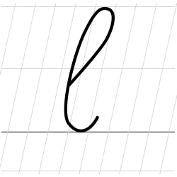 Litera Ll scrisă cu fontul „School Script Dashed”.