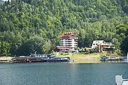 Pe malul stâng – în apropiere de baraj – se află amenajat un port turistic. Vaporașelor existente li se adaugă șalupe, hidrobiciclete, căsuțe de lemn și un hotel plutitor[32]. Capacități suplimentare de cazare există pe ambele maluri, sub forma unor pensiuni agroturistice.