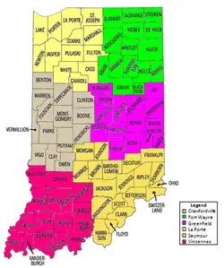 ![]() Harta statului Indiana indicând comitatul Tippecanoe |