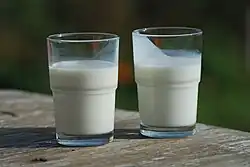 Laptele bătut (dreapta) comparat cu lapte proaspăt (stânga).