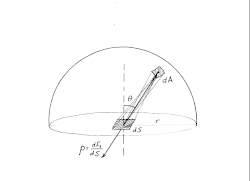 Radiația incidentă sub unghiul θ față de normală și care traversează un element de suprafață dA al hemisferei transmite lui dS în dt o cantitate de energie