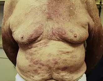 ![]() Erupție pe piept și abdomen din cauza leprei | |