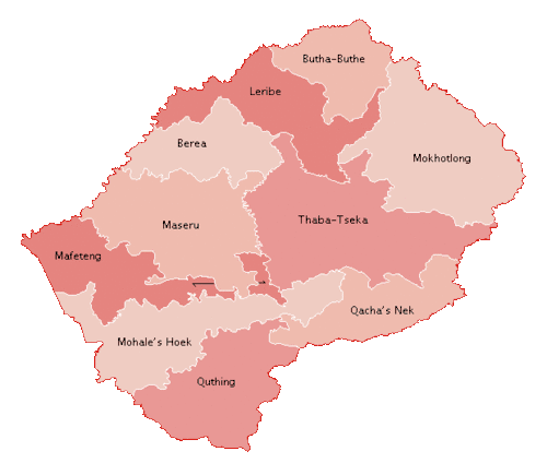 Administrativ, Lesotho este împărțit în 10 districte, fiecare condusă de un administrator de district. Fiecare district are o capitală cunoscută sub titulatura camptown.