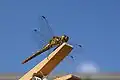 Libelulele mascul sunt cunoscute pentru comportamentul lor teritorial. Masculul patrulează o zonă așteptând trecerea unei femele și va vâna masculii intruși care apar în zonă. Masculul își va transfera sperma din organul său genital, aflat la capătul abdomenului, unui receptacul special aflat pe al doilea segment abdominal, lângă torace. Când o femelă va intra pe teritoriul său, el o va urmări, se va așeza peste ea și o va înhăța de sub gât cu organele sale speciale din capătul cozii. Atunci femela va aduce în contact capătul abdomenului ei cu receptaculul masculului pentru a primi sperma. Perechea poate rămâne în această poziție legată un timp și poate chiar zbura un timp în această poziție.[4][6][7]