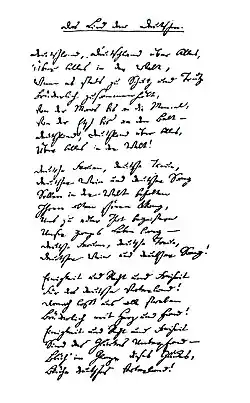 ![]() Reproducere a manuscriptului Das Lied der Deutschen lui Hoffmann von Fallersleben. Originalul este păstrat în Kraków, Polonia la colecția Berlinka.[1] | |