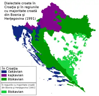 - dialectul štokavian (štokavski), vorbit în cea mai mare parte a Croației și de către croații din Bosnia și Herțegovina;