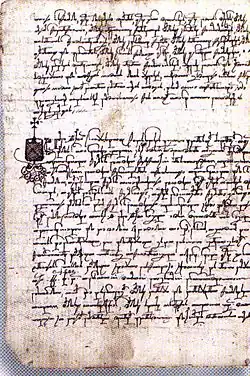 - Primul dialect care se desprinde este cel čakavian, în care sunt scrise primele texte laice ale limbii croate, cu elemente de slavonă, în secolul al XIII-lea[30]: Vedere asupra țării Istriei (1275) și Codicele din Vinodol (1288). Primul dicționar croat, lucrare a lui Faust Vrančić (1595), este în principal al dialectului čakavian.