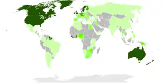 | Limbă oficială în | 67 de țări 27 de entități nesuverane Numeroase organizații |