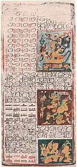 Scriere yukatecă în Codexul Dresden, secolele XI–XII d.Hr., Chichén Itzá