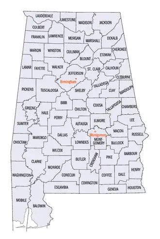 - Vedeți și Listă de comitate din statul Alabama.