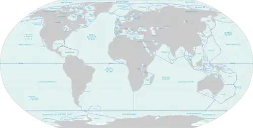 Harta limitelor mărilor și oceanelor, așa cum sunt acestea definite de Organizația Hidrografică Internațională