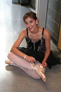 Balerină purtând încălțăminte specifică, pantofi cu poante