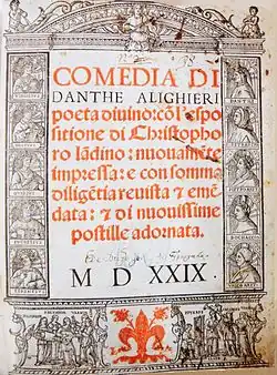 - Dante Alighieri: "De Vulgari Eloquentia" (în latină) 1305, "Il Convivo" 1306-1308, "La Divina Commedia" (începută în 1311) cu cele trei părți: "L'inferno", "Il purgatorio", "Il paradiso"