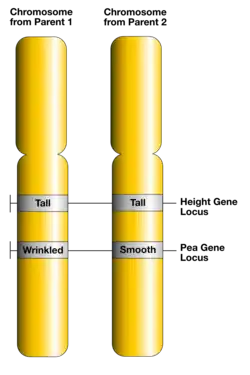 Genele situate pe același locus controlează același caracter elementar, fiind gene homoloage. Fiecare individ poate avea pe un locus specific fie o genă maternă, fie una paternă. Pe același locus se pot găsi două sau mai multe variante ale aceleiași gene (alele). La unii viruși, pe același locus se pot găsi două gene - situație se pare excepțională. La eucariote, pe un locus se găsește o secvență de nucleotide care controlează sinteza unei secvențe de aminoacizi. Succesiunea locusurilor este cunoscută doar la viruși. La eucariote locusurile sunt separate de secvențe netranscrise. Se disting mai multe variante: locusuri monomorfe, pe care există o singură alelă; locusuri mutabile, care poate suferi mutații; locusuri polimorfice, pe care există mai multe alele; locusuri în tandem, rezultate din duplicarea unui singur locus.[3]