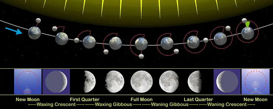 ![]() Lună plină văzută din emisfera nordică a Pământului | |||||||||||||