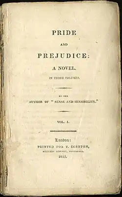 ![]() Paginǎ a primei ediții a cărții Mândrie și prejudecată, 1813 | |||||||