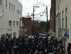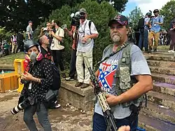 Infanteristul Vasillios Pistolis, membru al grupului terorist Atomwaffen Division, a fost înregistrat în timp ce striga „White Lives Matter” și You will not replace us” alături de ceilalți protestatari; ulterior a descris pe un ton lăudăros modul în care a atracat o femeie trans cu un steag confederat.[144][145] A fost judecat de curtea marțială a United States Marine Corps pentru încălcarea ordinelor și fals în declarații în iunie 2018.[146]
