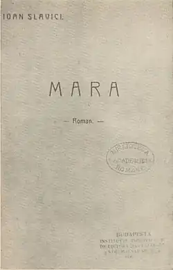 ![]() Coperta primei ediții publicate în România a romanului Mara (1913) | |