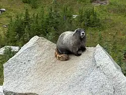 - Marmota caligata, Canada, Alaska și nordul Munților Stâncoși, în Statele Unite ale Americii, Marmota din Munții Stâncoși