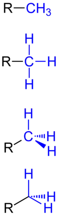 Când este plasată în poziție alilică sau benzilică, puterea legăturii C-H scade, astfel că reactivitatea grupei metil crește. O manifestare a acestei reactivități crescute este tipul de reacție numită halogenare fotochimică (în prezența luminii). Un exemplu este clorurarea metilului din toluen (în poziție benzilică) pentru obținerea clorurii de benzil. În mod analog se obțin și derivații clorurați ai metanului (clorura de metil, clorura de metilen, clorura de metin și tetraclorura de carbon).[2]