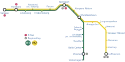 | M2 | Galben | Vanløse – Lergravsparken | 2002 | 10,2 km | 11 |