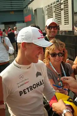 Michael Schumacher ([ˈmɪçaːʔeːl ˈʃuːmaxɐ] ; n. , Hürth, Republica Federală Germania) este un fost pilot de curse german ce a concurat în Campionatul Mondial de curse auto Formula 1 pentru echipele Jordan, Benetton, Ferrari și Mercedes. Schumacher are un record comun de șapte titluri de campion mondial la piloți (la egalitate cu Lewis Hamilton) și, la momentul retragerii sale din sport în 2012, deținea recordurile pentru cele mai multe victorii (91), pole position-uri (68), și podiumuri (155) — care de atunci au fost doborâte de Hamilton — în timp ce el menține în continuare recordul celor mai multe tururi rapide (77), printre altele. Schumacher este considerat în majoritate drept unul dintre cei mai mari piloți de Formula 1 din istorie,[9][10][11][12] și este considerat de unii, inclusiv chiar de Hamilton, ca fiind cel mai mare din toate timpurile.[13][14][15]