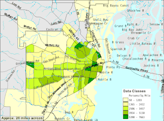 - 1 2 „2000 census for Mobile, Alabama”. "U.S. Census Bureau". Arhivat din original la . Accesat în .