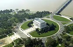 Cele 36 coloane în stil doric care înconjoară statuia lui Lincoln simbolizează cele 36 de state ale Statelor Unite ale Americii, câte erau pe vremea președinției lui Lincoln. Mai târziu au fost înscrise pe peretele monumentului și alte 12 state, care au intrat ulterior în componența uniunii. Pereții au inscripții cu anumite discursuri ale președintelui american. Astfel, pe peretele de nord se află discursul lui Lincoln din 1865 de la alegerea lui ca președinte, iar pe peretele de sud se poate citi discursul său de la Gettysburg. Statuia impunătoare din marmură albă, opera sculptorului Daniel Chester French, îl prezintă pe președintele Lincoln șezând și are o înălțime de 5,80 m. Construcția a început în 1914. Proiectul ales de arhitectul newyorkez Henry Bacon s-a bazat pe un templu grecesc antic cu 36 de coloane. Când monumentul a fost finalizat în luna mai 1922, Uniunea se extinsese cu încă 12 noi state, astfel încât pe partea exterioară a zidurilor monumentului au fost sculptate numele a 48 de state. După admiterea statelor Alaska și Hawaii în Uniune, o nouă placă a fost adăugată cu numele noilor state.