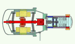 - Timpul 2: Pistonul de refulare are o cursă scurtă, pe când pistonul de lucru efectuează mai mult de 70% din cursa sa totală. El generează energie mecanică.