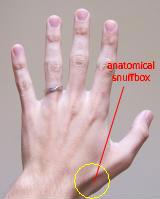 Tabachera anatomică are o margine laterală formată de tendoanele mușchiului extensor scurt al policelui (Musculus extensor pollicis brevis) și al mușchiului abductor lung al policelui (Musculus abductor pollicis longus), iar marginea medială de către tendonul mușchiului extensor lung al policelui (Musculus extensor pollicis longus). Aria tabacherei anatomice este formată de osul trapez. Pielea ridicată de cele două margini formează o depresiune în care se punea tutunul pentru a fi prizat, de unde și denumirea de "tabachera anatomică".
