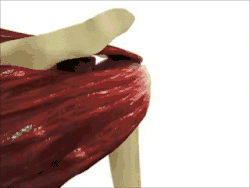 Muşchii rotatori laterali (în afară) ai brațului: mușchiul rotund mic şi mușchiul infraspinos