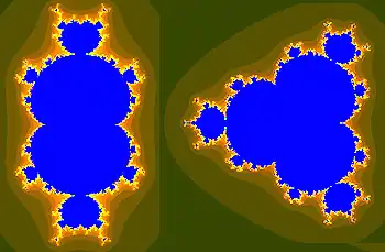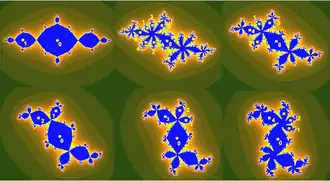 - ↑ en Benoît Mandelbrot, Fractal aspects of the iteration of for complex , Annals NY Acad. Sci. 357, 249/259