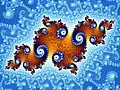 - Pasul 12: În exteriorul apendicelor pot fi recunoscute insule de structuri. Au forma mulțimilor Julia Jc. Cea mai mare dintre ele poate fi găsită în centrul "cârligului dublu" din partea dreaptă.