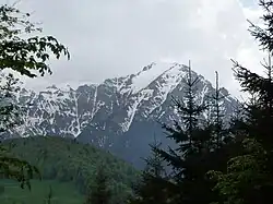 ![]() Munții Bucegi văzuți de pe vârful Cristianu Mare din Munții Postăvarul | |