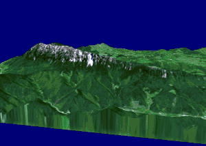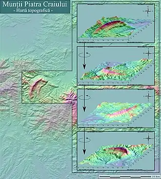 Masivul Piatra Craiului 3D, animație cu elevație de 120%.