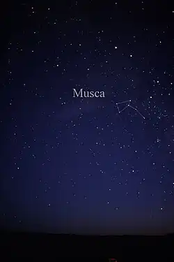 Musca este o mică dar ușor identificabilă constelație aflată în sudul Crucii Sudului. Conține o stea proeminentă (α Mus) de magnitudine aparentă 2m.