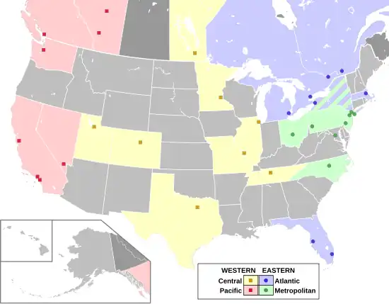 | Divizia Pacific | Divizia Centrală | Divizia Atlantic | Divizia Metropolitană |