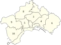 Orașul are 31 de cartiere organizate în 10 sectoare, fiecare având administrație separată.