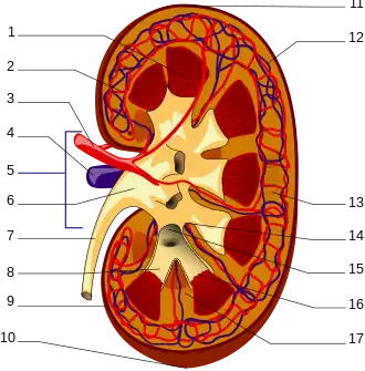 Un rinichi uman (click pe imagine pentru descriere). | |