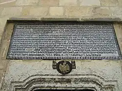- Pisania de pe frontispiciul Bisericii din Câmpulung care menționează anul sființirii ei, 1315;