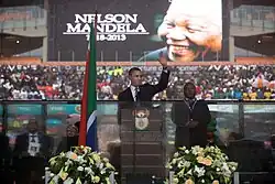 Nelson Rolihlahla Mandela (n. 18 iulie 1918, Umtata, Caoul Bunei Speranțe, Africa de Sud– d. 5 decembrie 2013)[7] a fost un om politic sud-african, care a deținut funcția de președinte al Africii de Sud în intervalul 1994-1999. Adversar al apartheidului, a fost primul președinte al Africii de Sud ales prin vot universal, într-un scrutin larg reprezentativ și cu participare multirasială. Guvernarea lui Mandela s-a axat pe dezmembrarea moștenirii apartheidului, prin combaterea rasismului instituționalizat, a sărăciei și a inegalității și promovarea reconcilierii rasiale. Un susținător al pan-africanismului și al socialismului democratic, el a fost președinte al partidului Congresul Național African din 1991 până în 1997. Pe plan internațional, Mandela a fost secretar general al organizației interguvernamentale Mișcarea de Nealiniere, între 1998 și 1999.